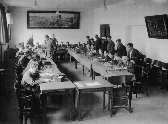 ДК Промкооперации. Сеанс одновременной игры в шахматы. Конец 1930-х годов: