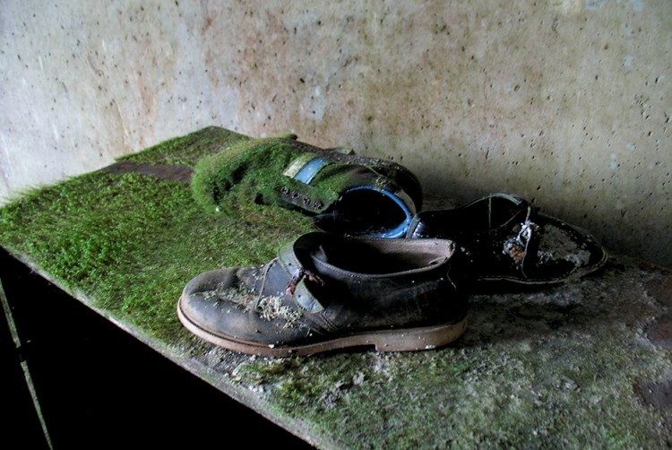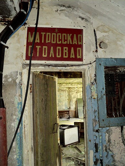 В больнице — ржавые кровати, зубоврачебное кресло, в красном уголке — обломки электрооргана «Ионика», будка киномеханика оклеена обложками дисков «Мелодии» и болгарского «Балкантона».