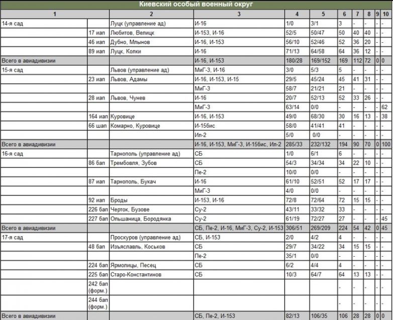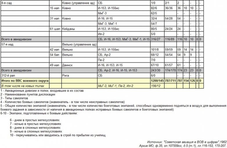 Но это одна, явная сторона медали. Другую хорошо раскрывают данные на сайте «РККА». Где представлена информация об всех самолётах ВВС РККА предназначенных для прикрытия госграницы. Правда, только ВВС РККА, авиация флота не указана, и только на 01.06.1941 года.