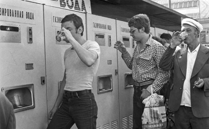 Затем, эти автоматы с газировкой — показатель высочайшей степени доверия граждан друг к другу. По сути, всё это напоминало детский сад. Дети знали, что можно пить из одного стакана, потому что все они дружные ребята, и всё у них хорошо.