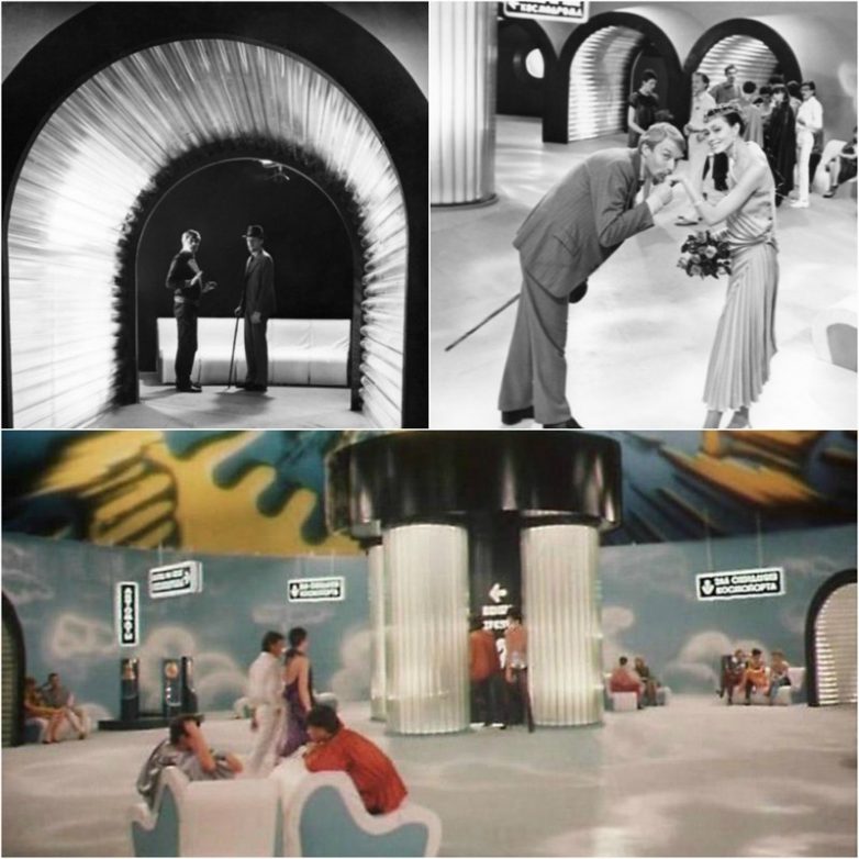 Для освещения коридоров «будущего» обошлись стандартными в то время лампочками накаливания. Их вставляли в специальные короба из матового стекла, и вуаля — получалось весьма футуристичное по тем временам освещение.