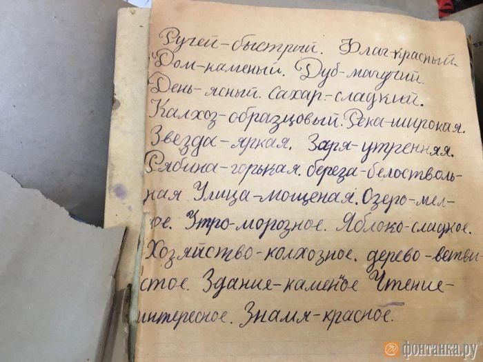 В Санкт-Петербурге на Петроградской стороне по время разбора старой кирпичной кладки обнаружили портфель, который выпал из дымохода. Портфель принадлежал простому советскому школьнику, а внутри него находились учебники, тетради и дневник за 1939 — 1940 учебный год.