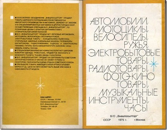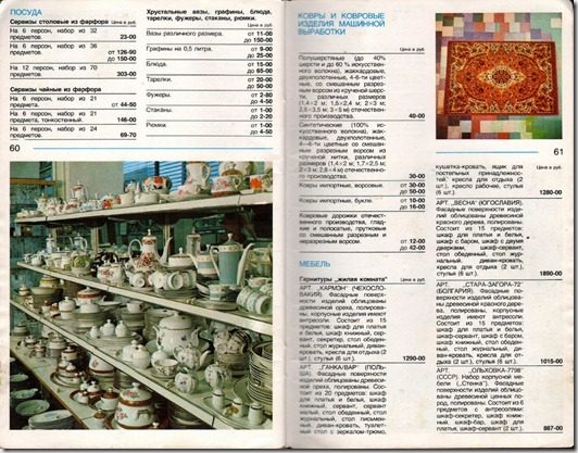 Правда, судить об уровне жизни/достатка по каталогам этих магазинов было бы неправильно, так как это, все таки были магазины для избранных, а явление дефицита не обходило стороной и эти «березки», по крайней мере, чековые.