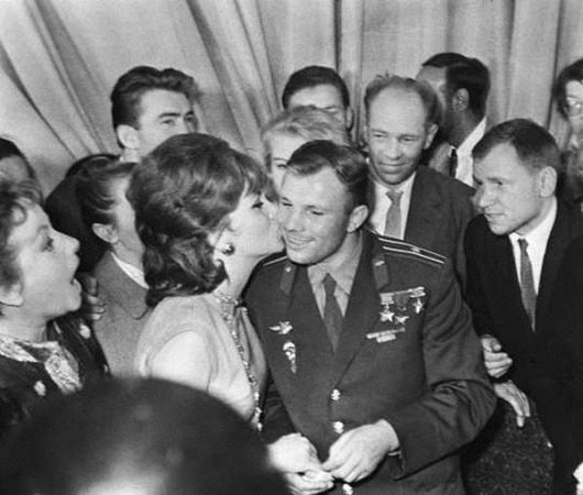 II Международный кинофестиваль. Итальянская киноактриса Джина Лоллобриджида целует Юрия Гагарина.