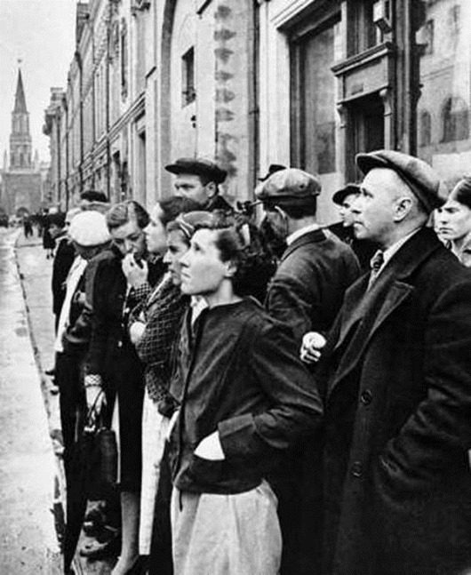 Москвичи слушают сообщение о нападении гитлеровской Германии.