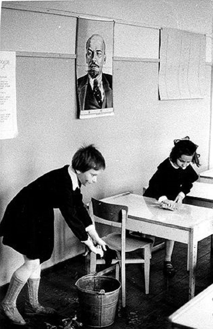 В разных школах было по-разному, но в нашей дежурство по классу не ограничивалось традиционным «сходи за мелом, намочи тряпку, раздай контрольные», но подразумевало и ежедневную уборку класса. Дежурили по двое, с товарищем по парте, прямо с первого класса. Как же неохота было после второй смены оставаться мыть полы, когда все твои друзья радостно вываливаются из школы, как же неохота было топать вечером обратно в школу, если ты учился в первую смену!