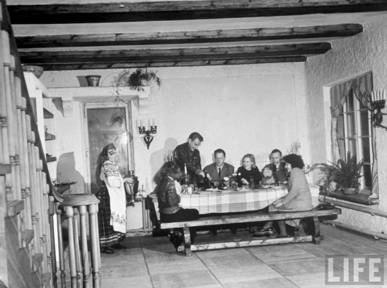 Григорий Александров и Любовь Орлова вместе с гостями среди которых писатель и журналист Эрскин Колдуэлл (муж Маргарет Берк-Уайт ) и нескольких других гостей.