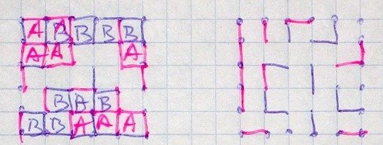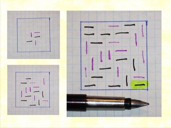 Игрок 2 делает то же самое, но его линия не может пересекать или соприкасаться с уже существующими? заграждениями?.. По мере заполнения поля, остается все меньше свободного пространства, и в конце необходим трезвый расчет, чтобы закончить игру. Игрок, который не может больше поставить свою черту, т.к. все уже загорожено, проигрывает.