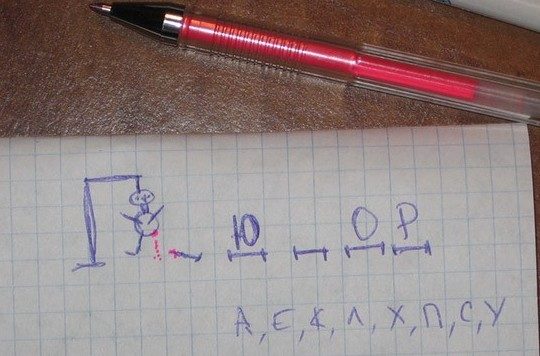 «Палач» — еще одна популярная головоломка, созданная специально для двух игроков. Для этой игры вам понадобятся чистая бумага и ручка.