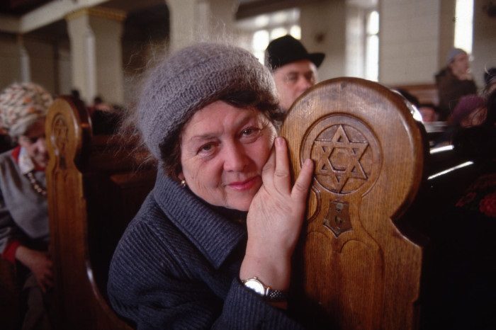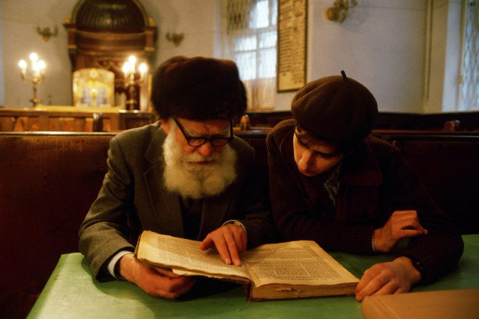 Дед в синагоге читает тору, а потом стоит в очереди за хлебом. Он должен есть мацу.