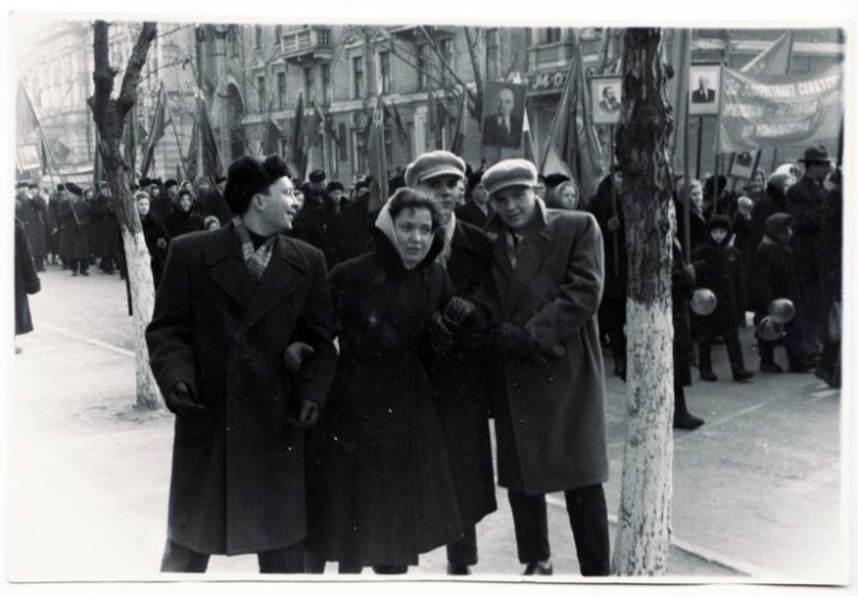 После официальной части переходили к праздничному застолью. Каждая хозяйка приберегала что-то из дефицитного (в зависимости от года) к такому моменту: баночку икры или венгерского горошка, крабов или просто майонеза. Собирались гости, звучали тосты, а затем песни и танцы, насколько позволяла площадь квартир и комнат.