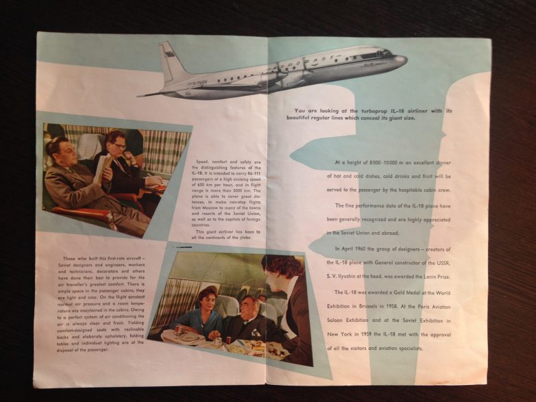 Наткнулся дома на подборку рекламных буклетов АЭРОФЛОТА (не могу писать его название маленькими буквами), которые мы, мальчишки 60-х, таскали из зала Центрального Аэровокзала Москвы, под окрики служащих, считавших, что по одному буклету будет вполне достаточно. Но разве можно устоять перед красочным буклетом для пассажира, куда входили, конверт, красиво оформленные справочные денные, открытка, проспекты основных самолетов, а самое главное — яркая наклейка, с изображением лайнера Ту-104, которую всегда можно было выгодно обменять на марки или на что еще «ценное». В зале стояли прекрасно изготовленные макеты основных самолетов, со «стеклянным» бортом, через который можно было увидеть весь салон. Честно говоря, думал, что эти макеты либо «приватизировали», либо просто выкинули на свалку, как поступили с большинством экспонатов ВДНХ, но нет, как я прочитал на авиафоруме, стоят они сейчас в музее Ульяновска.