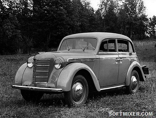Кстати, оформление экстерьера было не случайным. В конце 40-х годов в СССР оказалось много трофеев. В кинотеатрах демонстрировались трофейные фильмы, фронтовики навезли трофейных костюмов, серебряных ложек, аккордеонов и граммофонов. А государство наладило впуск трофейных машин. Внешность специально оставили старую, а именно — от немецкого Opel Kadett образца 1938 года.