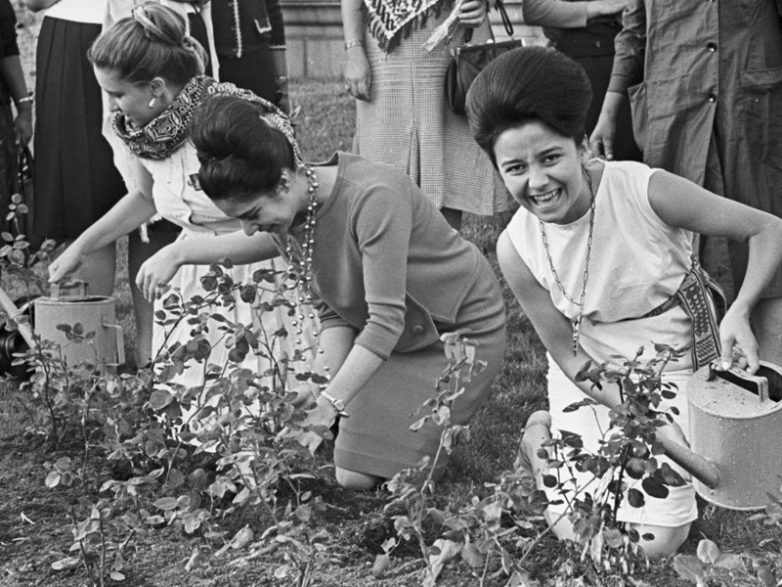 В 60-е годы в парке Горького проводились сельскохозяиственные выставки, а посетители могли полить выставочныи огород.