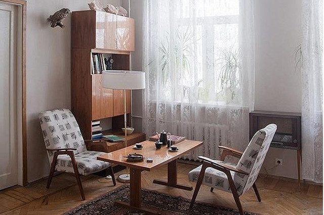 Здесь представлена мебель советская, но уже конца 60-х. Она упрощена, как и архитектура домов. А советская мебель довоенная и послевоенная — простая, но ещё с «излишествами». Шкафы, буфеты были со вставками или стеклянными, или инкрустацией. Полочки, этажерки — резные. Всё это создавало тепло и уют. А минимализм появился позже и в чешских, и в немецких гарнитурах, как мода на «современность» (на деле же, для удешевления производства).