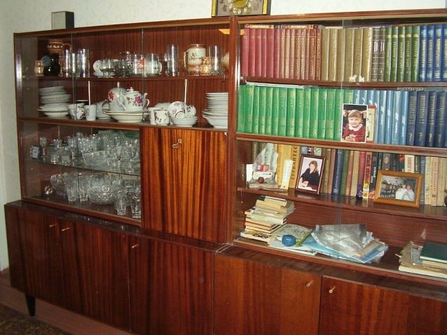 Было к тому что из мебели в дефиците и моде хрусталь. У нас, где я жил хрусталь доставался по блату из под полы, и был шиком моды и гордости хозяв квартиры перед гостями, разливающие посредственную водку из хрустального графинчика в хрустальные стопоря.