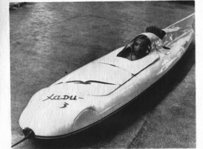 В 1962 году в Лаборатории скоростных автомобилей ХАДИ был разработан проект самой маленькой в мире гоночной машины. В автомобиле массой всего 180 килограмм пилот помещался лежа, что обеспечивало очень хорошую обтекаемость. Планировалось, что 500-кубовый двигатель при малых габаритах и весе позволит разогнаться до 220 км/ч. К сожалению, при испытаниях опытного образца на равнине соляного озера Баскунчак (советский аналог Бонневилля) «максималка» составила всего 100 км/ч. Порочной оказалась новая технология бесшинных колес.