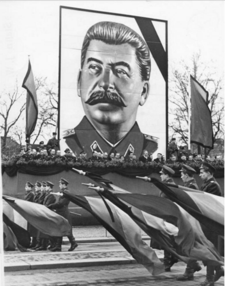 Берлин. Траурный караул перед портретом Сталина на Шталин-аллее. 7 марта 1953 года.