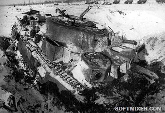 Советский танк Т-28, подбитый на Карельском перешейке в районе высоты 65,5.