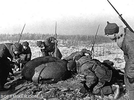 Замерзшие в окопе красноармейцы 44-й стрелковой дивизии.
