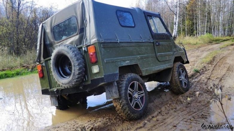 На неё ставили движок от ВАЗ, зверь!!! Проходимость лучше чем у УАЗа, нет моста с редуктором, днище гладкое, по грязи скользит.