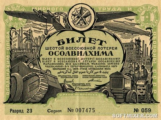 Одними из самых интересных лотерей по подборке призов прославился ОСОАВИАХИМ. Что можно было выиграть? Кругосветное путешествие! Историки утверждают, что это рекламный ход.