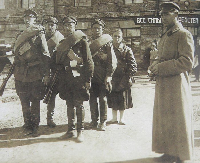 Молодые рабочие, мобилизованные в ряды Красной Армии, отправляются в расположение своей части. Московская область, РСФСР, СССР. Сентябрь 1941 года.