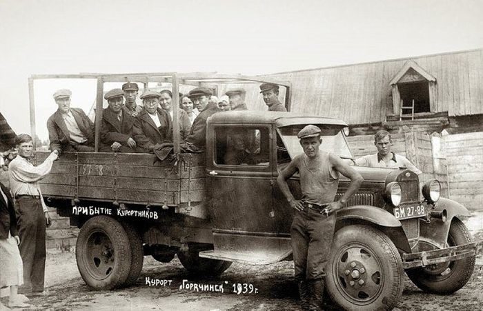 Прибытие отдыхающих на курорт «Горячинск». Село Горячинск, Бурятия, РСФСР, СССР.1939 год.