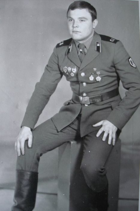 Рядовой Михаил Воробьёв (впоследствии Михаил Круг) в армии. г. Лебедин, Сумская область, УССР. Начало 1980-х гг.