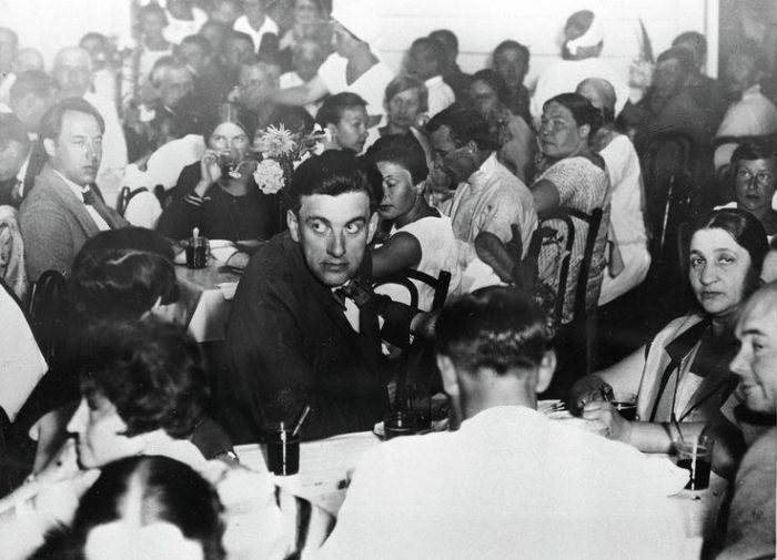 Владимир Маяковский на вечере, посвященном открытию столовой Дома отдыха работников искусств, 1929 год