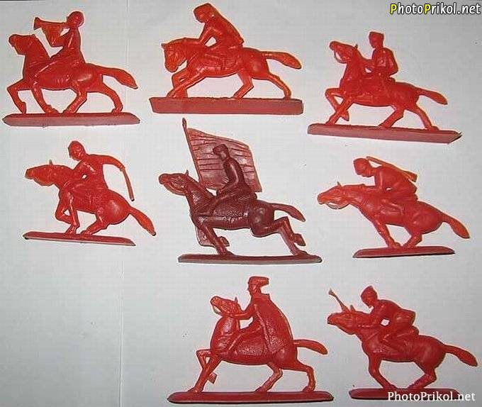 ГДРовские солдатики были совершенно другие — из мягкой пластмассы типа резины, со съемными луками, копьями и пр… Был ковбой, можно было его снимать с лошади… цветные, да.
