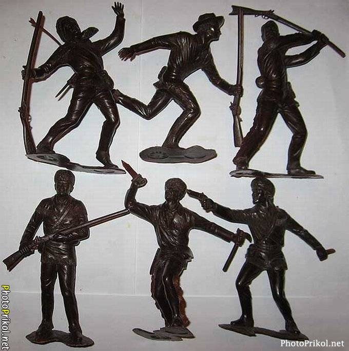 Дизайн донецких индейцев и ковбоев слизан с ГДРовских, только у немцев были цветные, старший брат целые полки лепил из пластелина