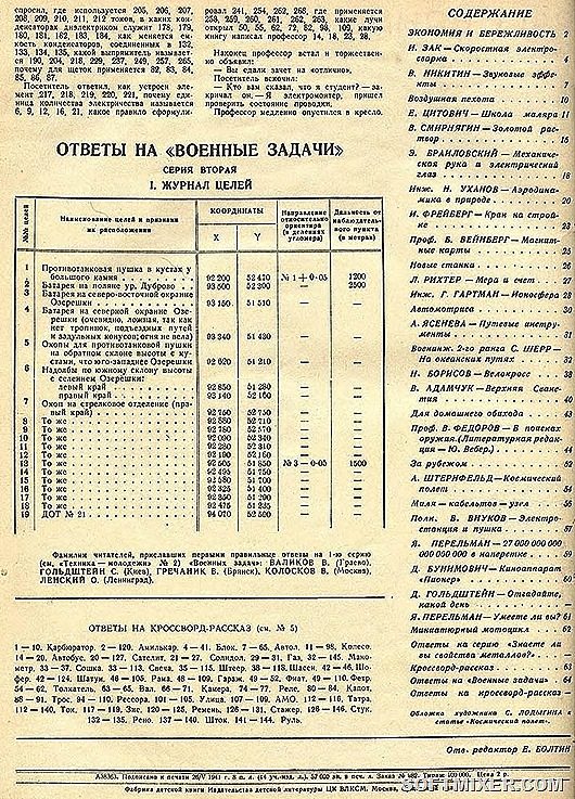 Были и «Военные задачи» в журнале «ТМ». Например посвященная «Богу войны» артиллерии. Ответы на 64-ой стр. говорят о наличии интереса у подписчиков и знаний Правил стрельбы наземной артиллерии (ПСНА).