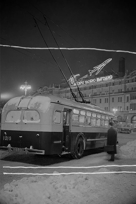 50-70 — е… ностальгию конечно вызвали, но и суровую реальность тех лет тоже отразили! Впечатлил залитый светом вечерний тролейбус в заснеженном городе на фоне рекламы типа «Летайте самолетами Аэрофлота». Даже запах салона такого вспомнился! Спасибо! :)