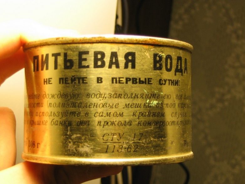 Эта вода предназначена для индивидуального употребления на спасательных шлюпках и плотах морских судов. Если вдруг морякам приходилось покинуть корабль и провести несколько дней в море, им очень помогали такие консервы, ведь соленую воду не попьешь!