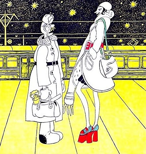 Так что кто не согласен с политикой партии — тот «не наш», отступлений не допускается! Сосед по прежнему дому был какой-то некрупный парторг в цехе автозавода и иногда ездил как контролирующее лицо с группами наших инженеров в «загранки» и приезжал с теми самыми шмотками, которые так высмеивались на картинах в этой статье — торговать он ими боялся — это было уголовно наказуемо в те годы да и если вскроется как он их получил то конец карьере — так он их просто соседям предлагал «по недорогой цене» или его семья носила, правде не сильно афишируя этим — все-таки должность обязывала быть скромным идейно правильным советским человеком.