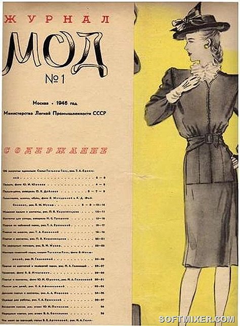 После 1945 года министерство легкой промышленности стало издавать сезонные журналы мод с иллюстрациями и фотографиями, описаниями фасонов, фактуры материалов, аксессуаров, с выкройками и вкладками: «Журнал мод», «Ателье мод», «Платье», «Сшейте сами», «Мода» и др. С середины 40-х гг. приступает к изданию сезонного «Журнал мод», отображающего последние веяния моды.