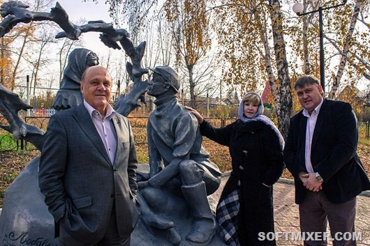 Владимир Меньшов полон сил и творческих планов… Собирается снимать фильм «Москва слезам не верит»-2. Режиссер с супругой Алентовой, на фоне памятника фильму.