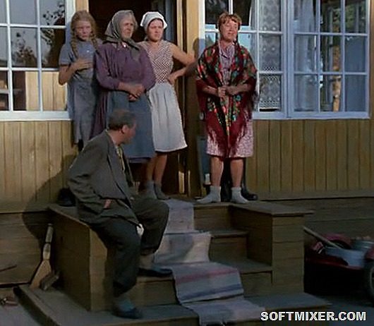 После сцены, когда дядя Митя сообщает о смерти бабы Шуры («инфаркт микарда, вот такой рубец!»), сама баба Шура, Надя и Люда бегут за ним, спускаясь с деревянной лесенки. Смена кадра — и те же герои спускаются с той же лесенки заново