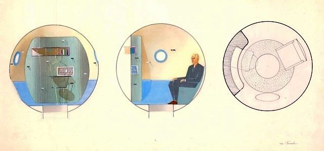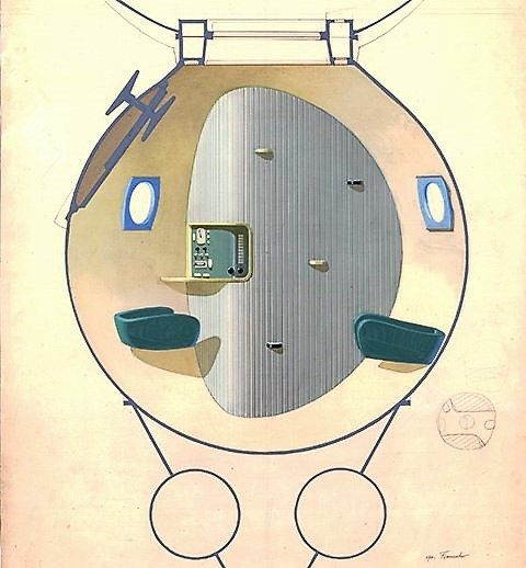 Эскиз обитаемого отсека космического корабля «Союз-М». Проект не был реализован.