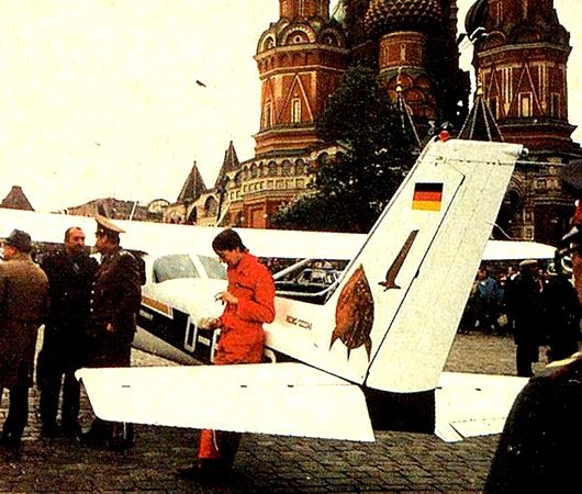 Мне очень понравилась версия о рекламном характере мероприятия. Оказывается, отец Матиаса Дитер Руст работал дилером «Цессны» в Западной Европе. К середине восьмидесятых объем продаж самолетов этой фирмы резко сократился, и, чтобы поднять интерес к марке, нужна была яркая рекламная акция.Единственный самолет, сумевший преодолеть непроходимую систему советских ПВО, — такой рекламе позавидует любая фирма.