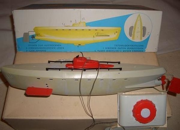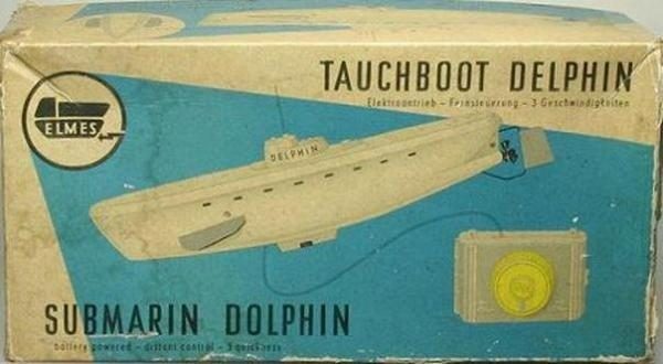 Электрическая подводная лодка «Дельфин». В пору моего детства каждый уважающий себя пацан должен был такой штукой обладать или по крайней мере к этому стремиться. У особо продвинутых было несколько. Игрушка для своего времени была сделана очень здорово — с дистанционным управлением, хотя и на достаточно длинном проводе (в то время первые радиоуправляемые, одно- и максимум двухканальные модели только появлялись) — она могла погружаться на глубину до нескольких метров. С большой увлечённостью устраивали мы «морские бои» на прудах и в больших фонтанах. Производилась лодка фирмой «ELMES», а позднее — фирмой «ANKER».