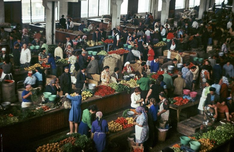А было так. Если в семье была неработавшая бабушка-она выходила, к открытию в «мясной» магаз., чтобы успеть купить чё-то номальное. Говядина — 2 р. Потому, как на рынке -это уже стоило «несколько побольше». Если такой бабушки не было- вечером в мясном, на прилавке- тока кости. Вообще рынки «совка» во всех городах оставляли двояко-гадливое впечатление. И, конечно, же фраза из фильмы «Гараж»- -«Что она там может украсть на рынке? Весы?» Оч. тонко подмечено…
