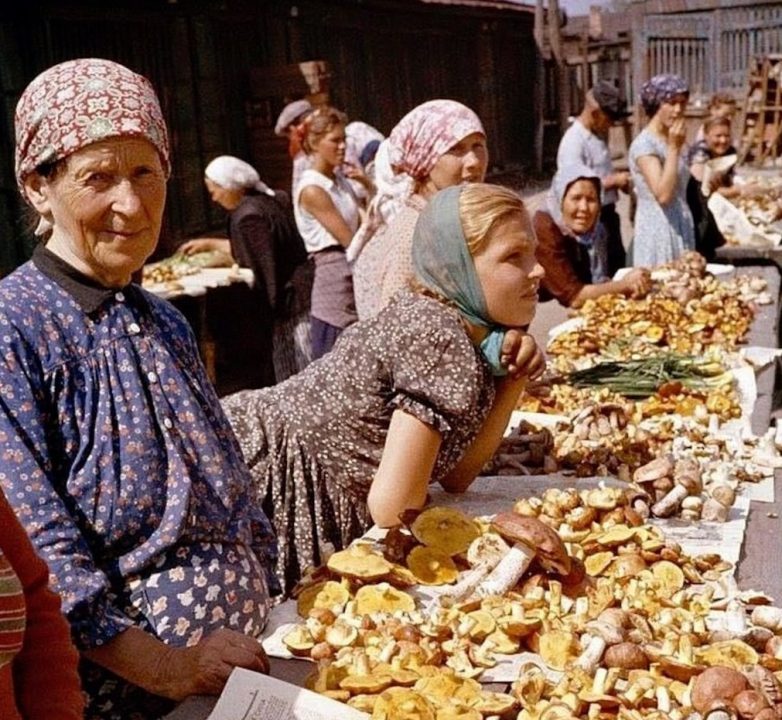 Не вводите людей в заблуждения. На всех фотографиях полная убогость ассортимента. На рынке продают только то что из подсобного хозяйства, помидоры огурцы, яблоки, творог, морковка, сало. Нет цитрусовых вообще. В мясных павильонах только мясо вразруб и то посмотрите на давку возле витрин людей которые стоят без авосек смотрят вытаращивши глаза и ничего не покупают. Да ещё цветные фотографии вызывают сомнения, что они с времён союза, где вы видели ценники 180 руб и 160 руб за кг мяса? Средняя пенсия была 90 руб.