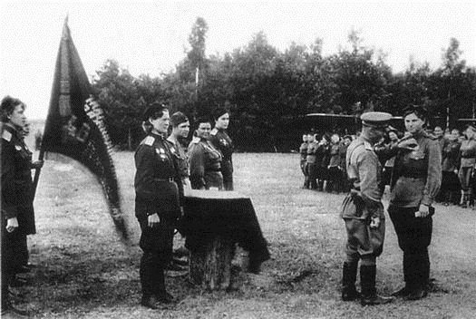 «Что в наших душах творилось, таких людей, какими мы были тогда, наверное, больше никогда не будет. Никогда! Таких наивных и таких искренних. С такой верой! Когда знамя получил наш командир полка и дал команду: „Полк, под знамя! На колени!“, все мы почувствовали себя счастливыми. Стоим и плачем, у каждой слезы на глазах. Вы сейчас не поверите, у меня от этого потрясения весь мой организм напрягся, моя болезнь, а я заболела „куриной слепотой“, это у меня от недоедания, от нервного переутомления случилось, так вот, моя куриная слепота прошла. Понимаете, я на другой день была здорова, я выздоровела, вот через такое потрясение всей души...»
