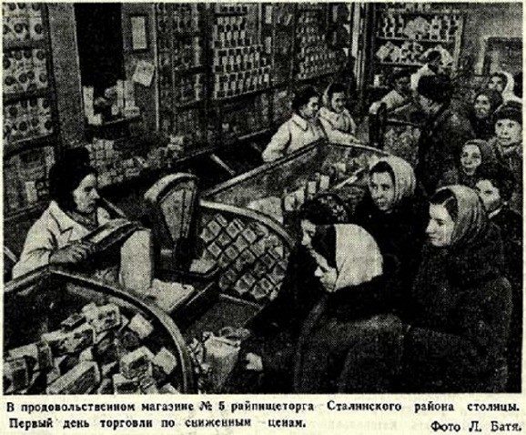 1 марта 1949 – 1951 годов происходят дальнейшие снижения цен, в среднем на 20% в год. Каждое снижение воспринималось как всенародный праздник. Когда 1 марта 1952 года очередного снижения цен не произошло, у людей возникло чувство разочарования. Однако 1 апреля того же года снижение цен все же состоялось. Последнее снижение цен произошло уже после смерти Сталина 1 апреля 1953 года. За послевоенный период цены на продовольствие и наиболее ходовые промышленные товары снизились в среднем более чем в 2 раза. Итак, восемь послевоенных лет жизнь советского народа ежегодно заметно улучшалась. За всю известную историю человечества ни в одной стране похожих прецедентов не наблюдалась.