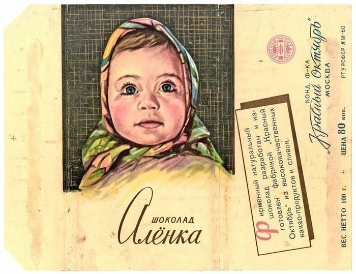 В 1960 году фотограф Александр Геринас сфотографировал свою восьмимесячную дочку Лену. Сначала снимок глазастой девочки в пёстром платочке появился в журнале «Советское фото», затем в первом номере журнала «Здоровье» за 1962 год. В 1964 году советскими кондитерами на московской фабрике «Красный Октябрь» была разработана рецептура шоколада с характерным кремовым вкусом. Обёртку этого шоколада украсила собой рисованная копия фотоснимка Лены.«ЛАМПА НАСТОЛЬНАЯ»