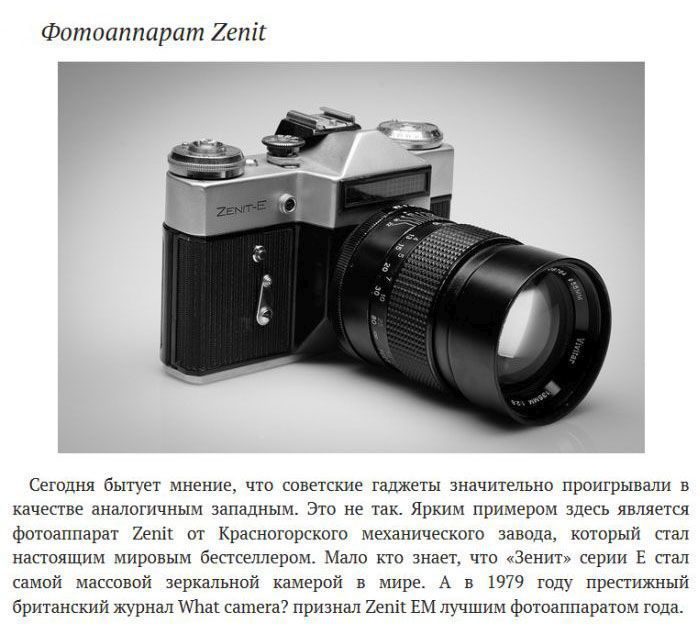Лучшая фотокамера на летних Олимпийских играх 1968 года в Мексике стал фотоаппарат «Ленинград». Главной конструктивной особенностью камеры является наличие пружинного вайндера, позволявшего производить серийную съёмку с частотой до 3 кадров в секунду. Получил «Гран-при» на Всемирной выставке в Брюсселе в 1958 году.А потом дорогой Леонид Ильич не стал самым большим другом Советских фотографов и Советская фото индустрия остановилась навсегда в 1970г. ХХ века.Мечта советского фотографа ГДР-овская «Практика» или «Пентакс», а не Зенит, чтоб орехи колоть.