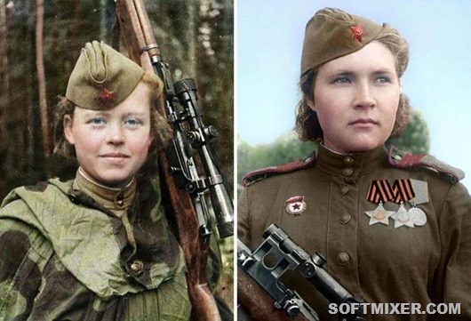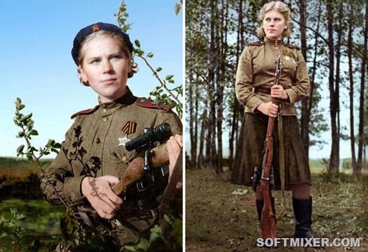 Ниже — 13 талантливо раскрашенных фото советских женщин-снайперов