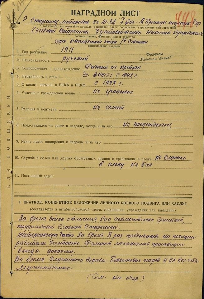 Направляю Вам копию донесения о подводной лодке Черноморского флота М-32, командир — капитан-лейтенант Колтыпин, которая доставляла боезапас и горючее войскам в Севастополь во время осады.